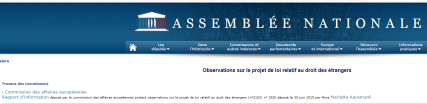 Pour un mémoire sur le sujet "Droit des étrangers", il est souhaitable d'avoir des informations récentes. Le plus judicieux est de regarder s'il y a un projet de loi ou un dossier législatif sur la question. En se rendant sur le site de l'Assemblée nationale, l'on découvrira qu'en juin 2015 un Rapport d'information a été déposé.