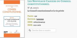 Pour un mémoire sur le sujet "Droit et vie privée", il est préférable d'avoir comme référence un dossier sur ce thème contenu dans la revue Les nouveaux Cahiers du Conseil Constitutionnel qu'un article de Closer !