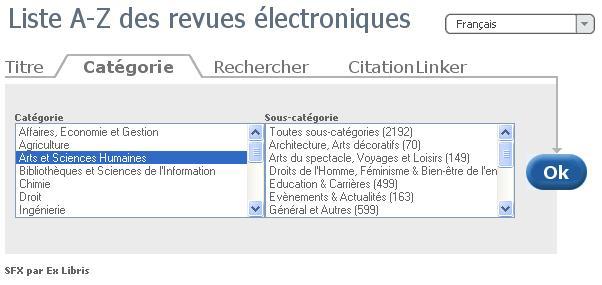 feuilleter des revues par catégorie pour trouver des revues électroniques.